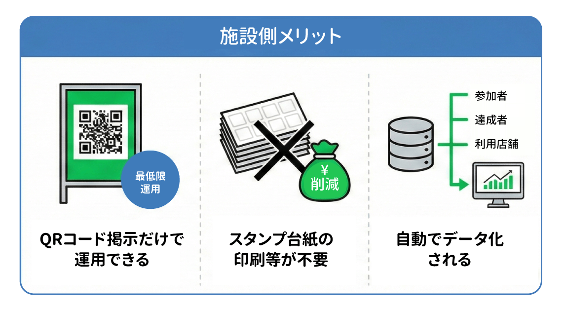 - スタンプ台紙の印刷等が不要でコスト削減できる