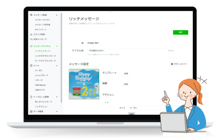 株式会社assistでは、リッチメニュー・リッチメッセージ・クーポン画像など、LINE運用で必要となる画像作成をサポートしています。