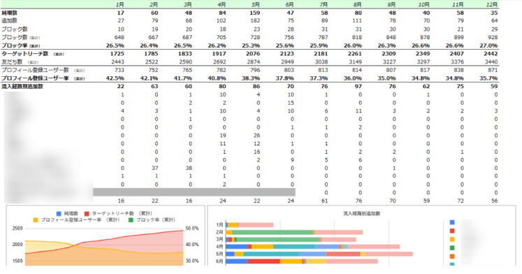 - 友だち数やブロック率の推移