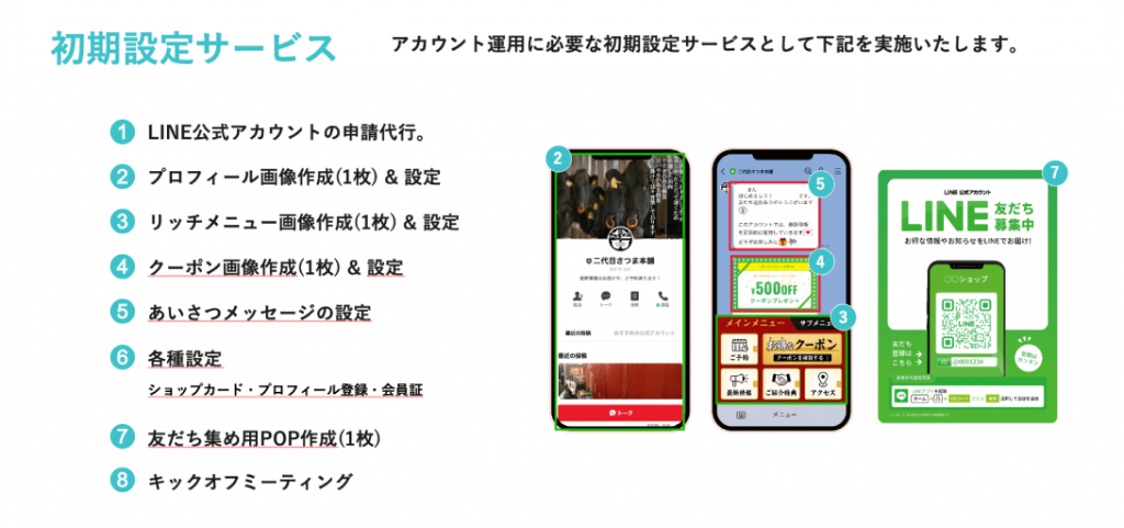 お客様と店舗をつなぐ一番身近なツール LINE公式アカウントアカウントの開設と運用をサポートします。
