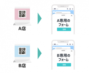 - A店用のQRコードから登録した人⇒「店舗A専用のプロフィール登録フォーム」